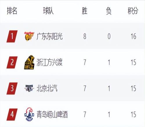 前四排名相较于上一轮,有了巨大的变动,广东广厦上升1位来到第1和第2,北京下滑2名来到第3,青岛继续稳居第4,下一轮广东将和北京直接对话,这一场胜负关乎到广东能否坐稳榜一位置,也关系到广东、北京、广厦、青岛的前四排位顺序。