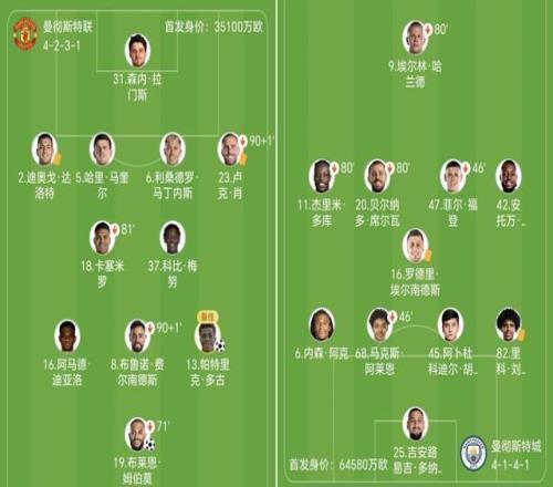 曼联积35分位列英超第4,遭遇4轮不胜的曼城积43分排在联赛第2,落后阿森纳7分。