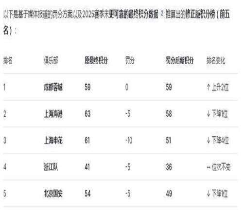 上港被罚5分依然比成都蓉城多1分冠军不变!板子打得轻重刚合适