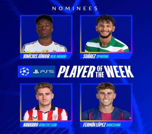 本轮欧冠最佳球员候选:维尼修斯、苏亚雷斯、纳瓦罗、费尔明 -